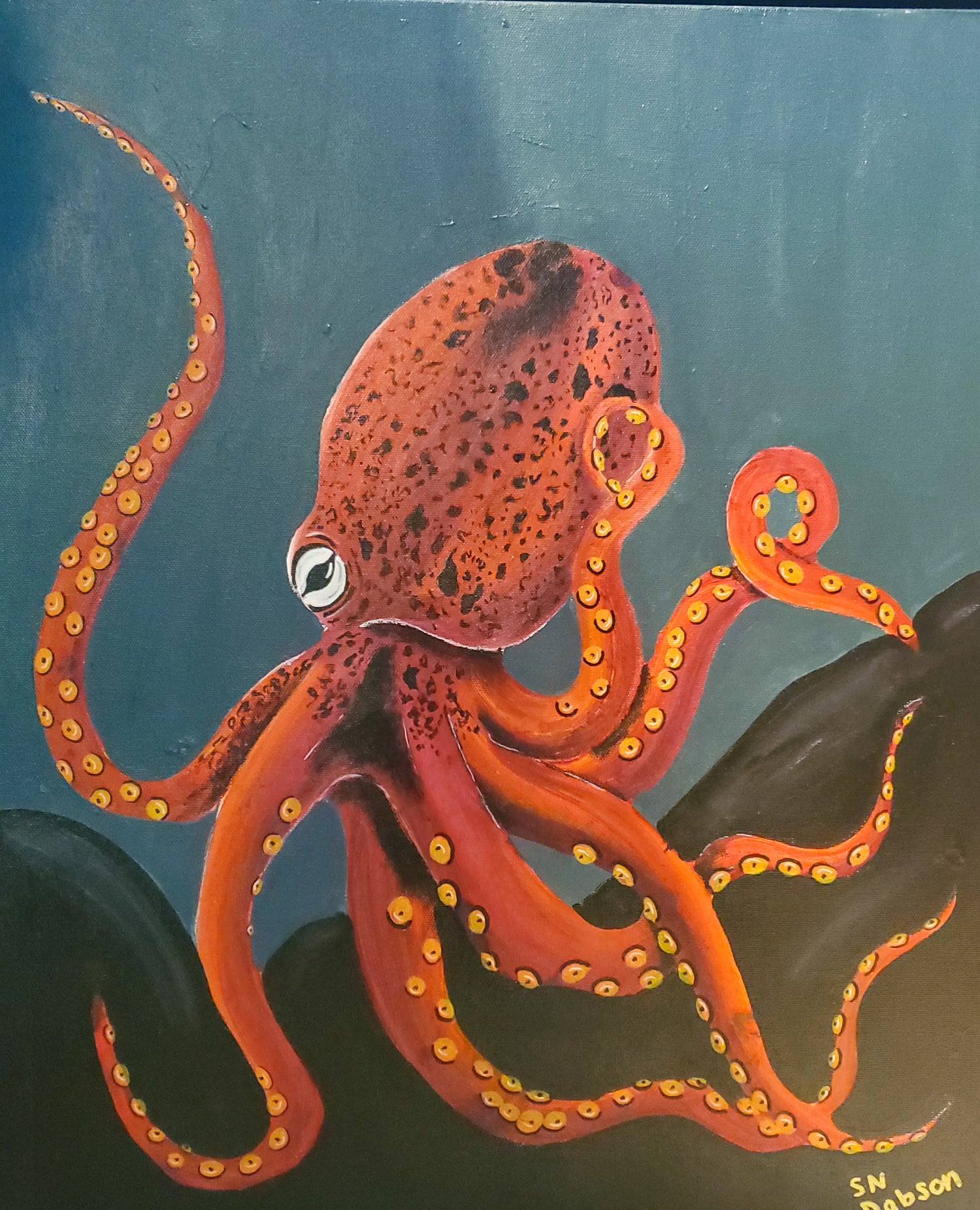 Fuse was created in 2022 during the Bartow Blooming Arts Festival. This piece features contrasting colors and a unique octopus.