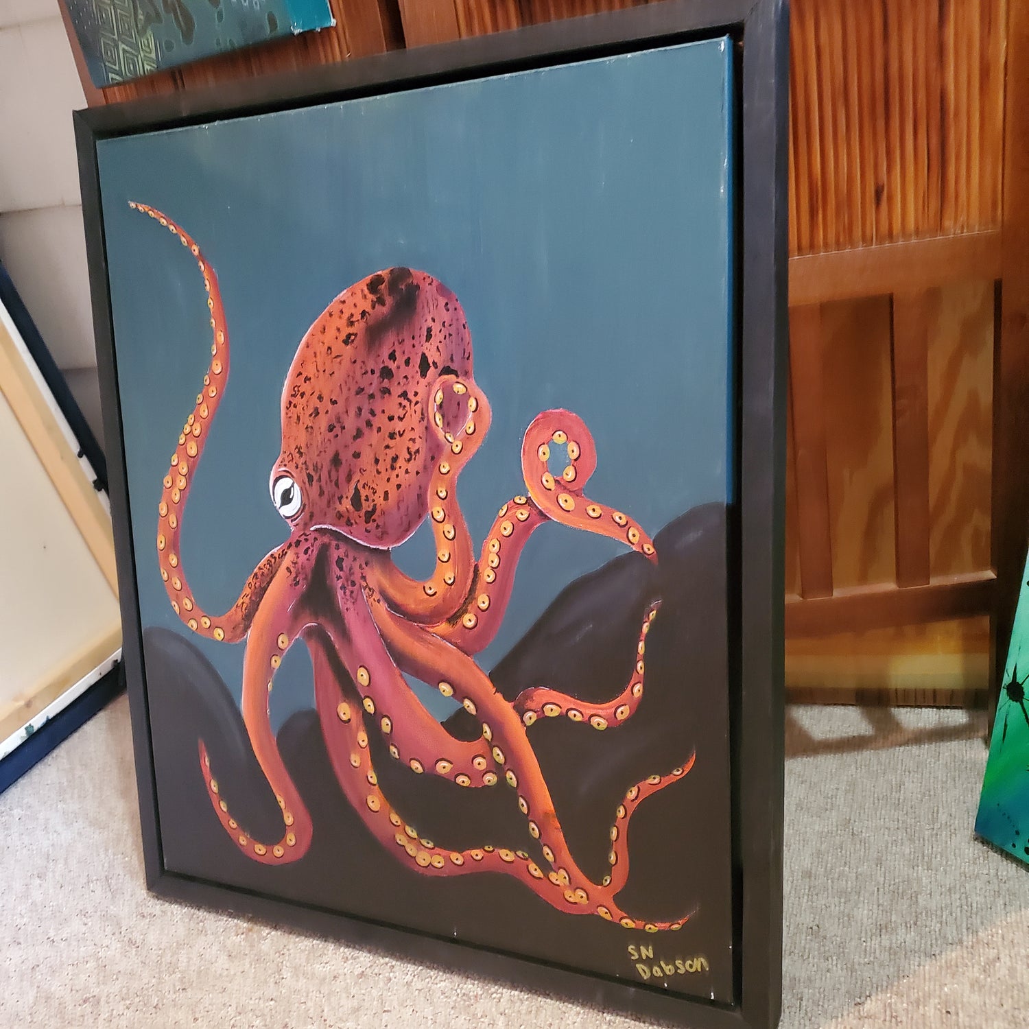 20x24 Acrylic on canvas framed with a hand-built wooden frame with a black stain.