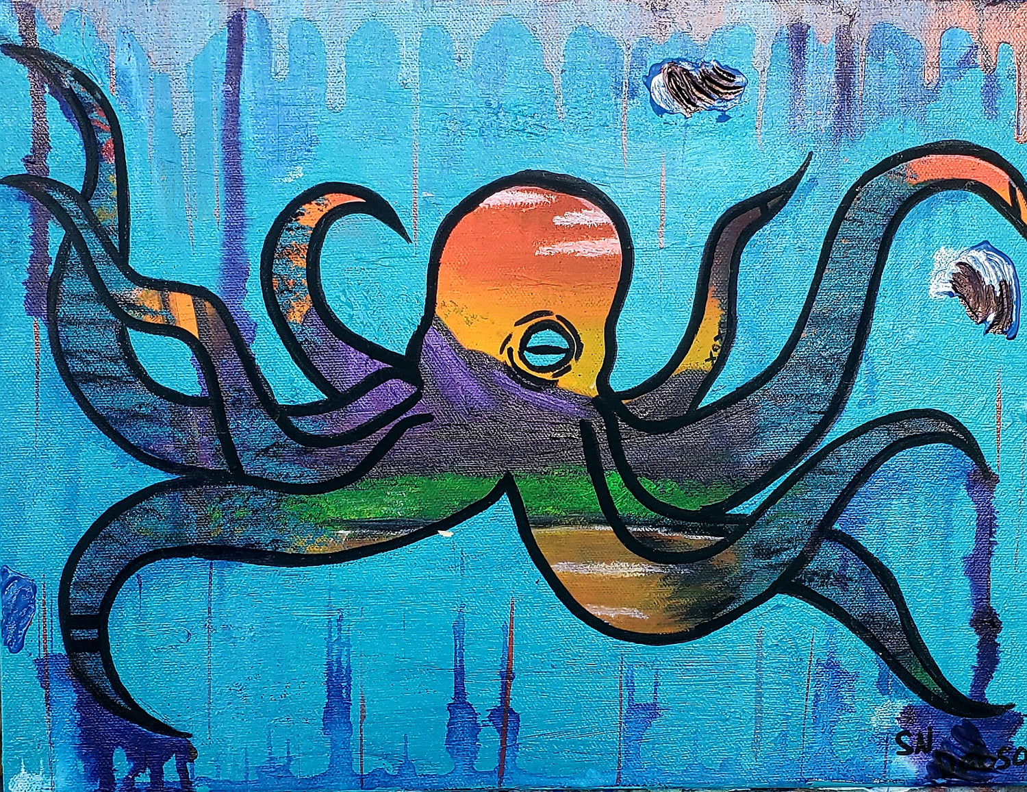 Other Side was inspired by both the intelligence of the octopus and our favorite happy little trees painter.