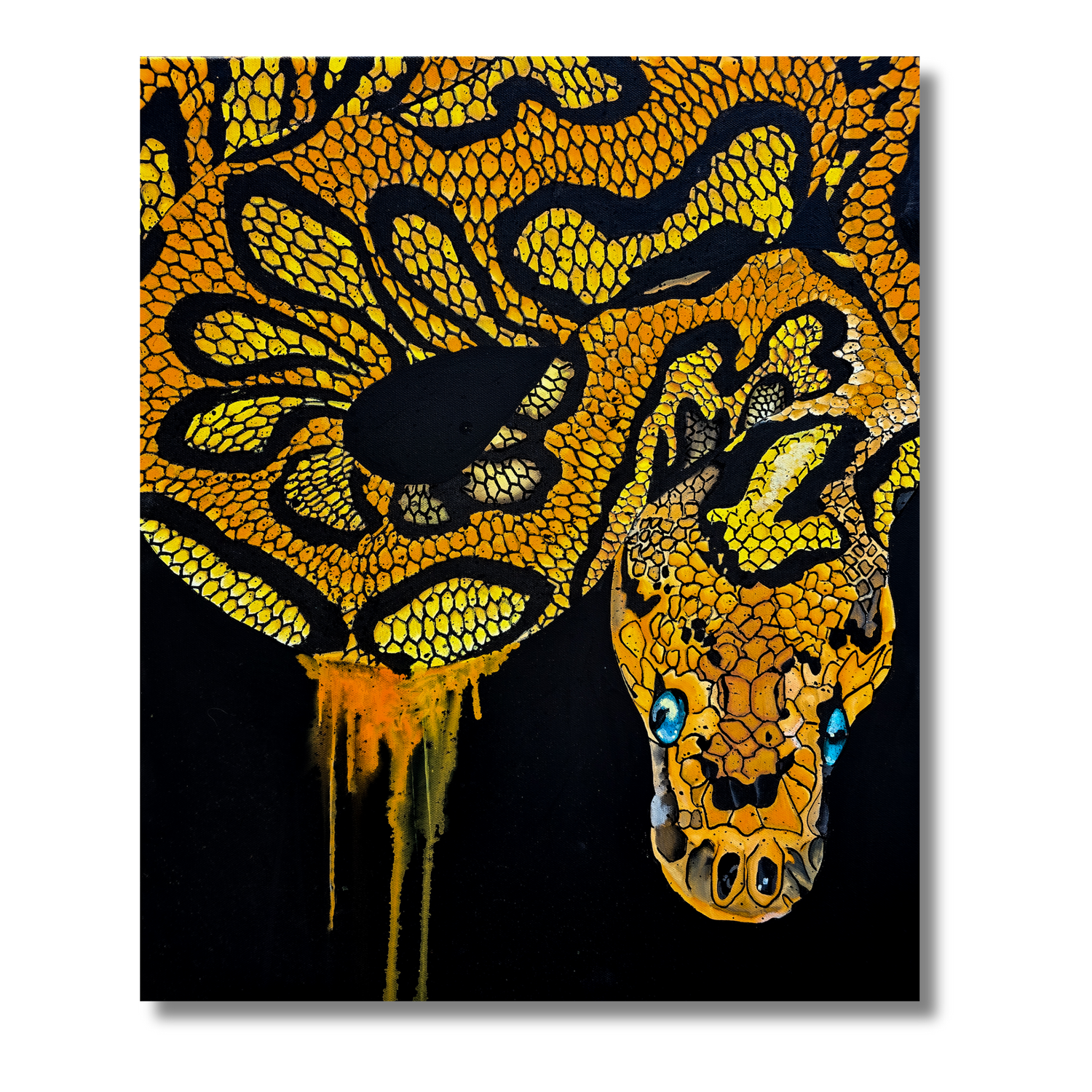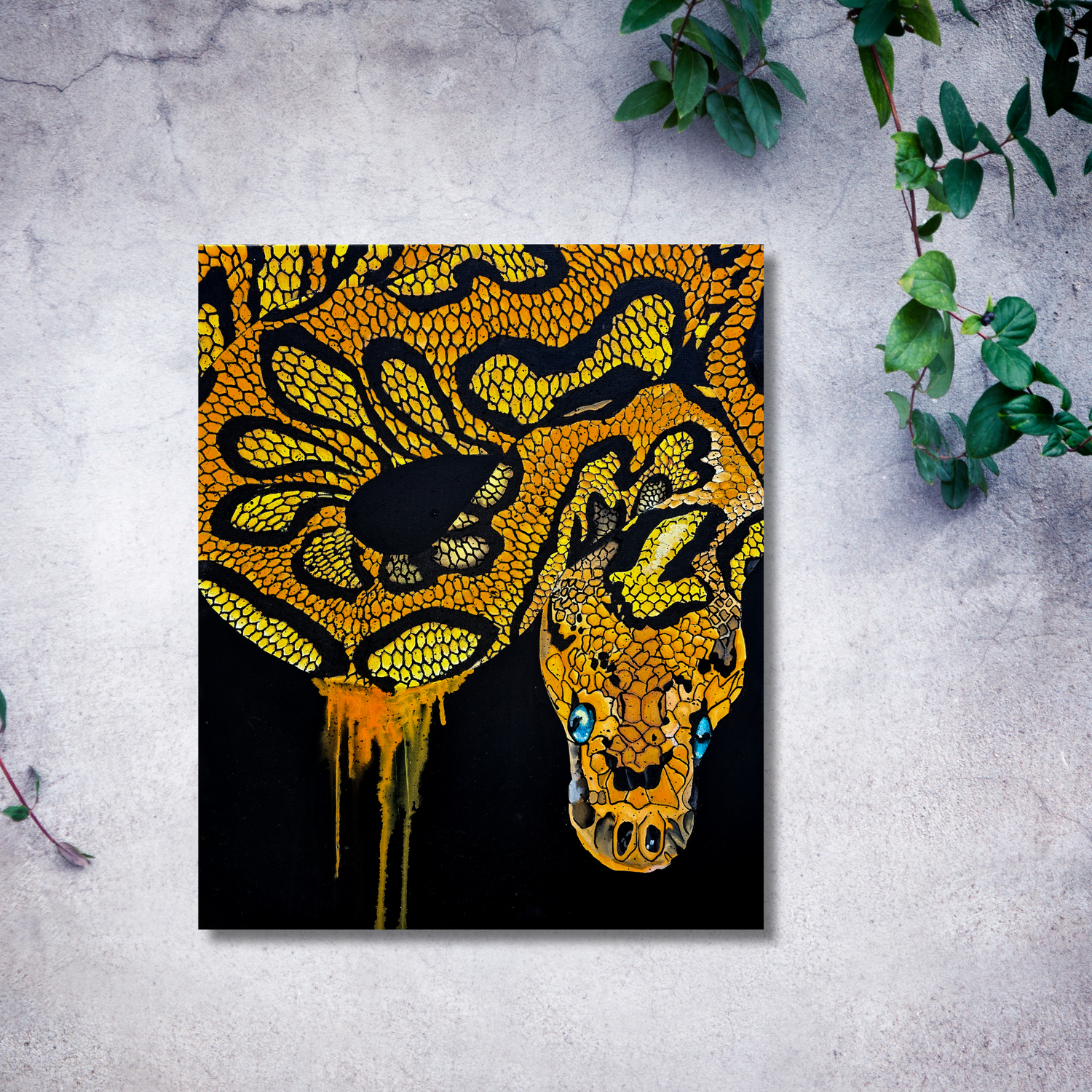 20x24 original acrylic painting on 1.5 in gallery wrapped canvas featuring a Pompeii. This piece is extremely eye catching in person and would make a great addition to any reptile room.